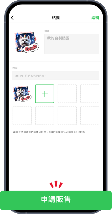 ▪️Step7:貼圖通過審核後,即可在 LINE STORE 或貼圖小舖下載,並傳給朋友、自己用,甚至開始販售 🎊!