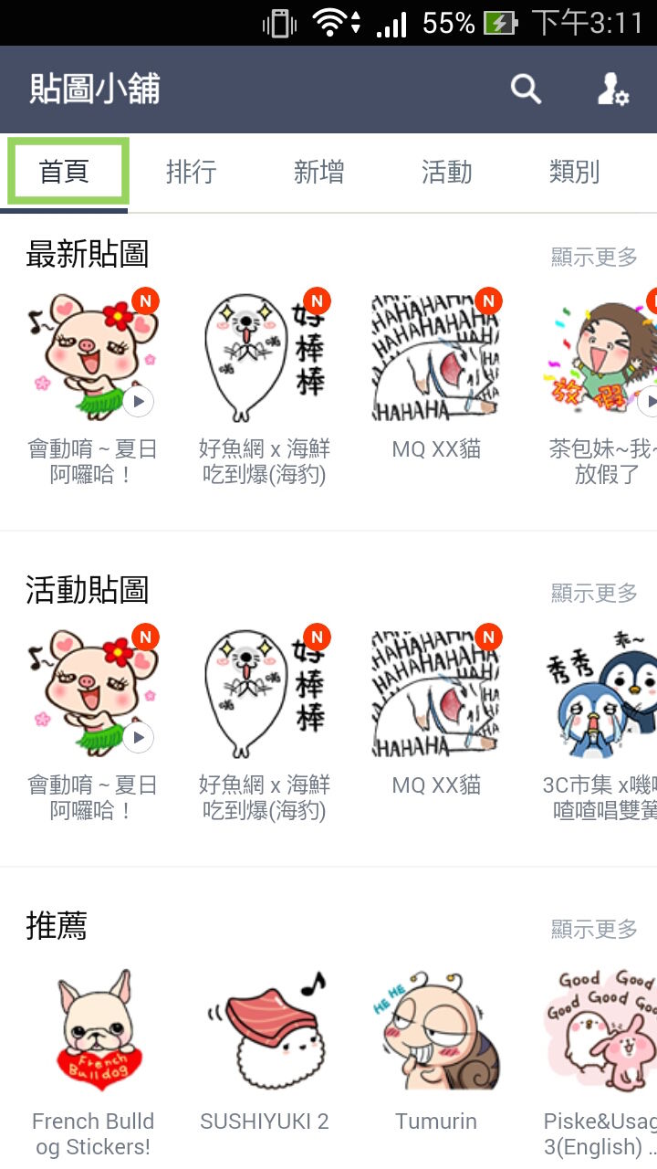 新版貼圖小舖增設的首頁專區,可以讓你輕鬆掌握各種貼圖動態,除了「熱門官方貼圖」、「熱門原創貼圖」、「最新貼圖」之外,還有新設的「推薦」專區,你可以根據自身需求快速瀏覽最適合的區塊,省去慢慢篩選的麻煩。