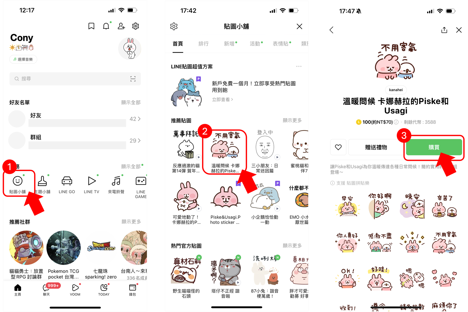 那~ 如果想用電腦網頁購買貼圖的話,該怎麼購買呢?