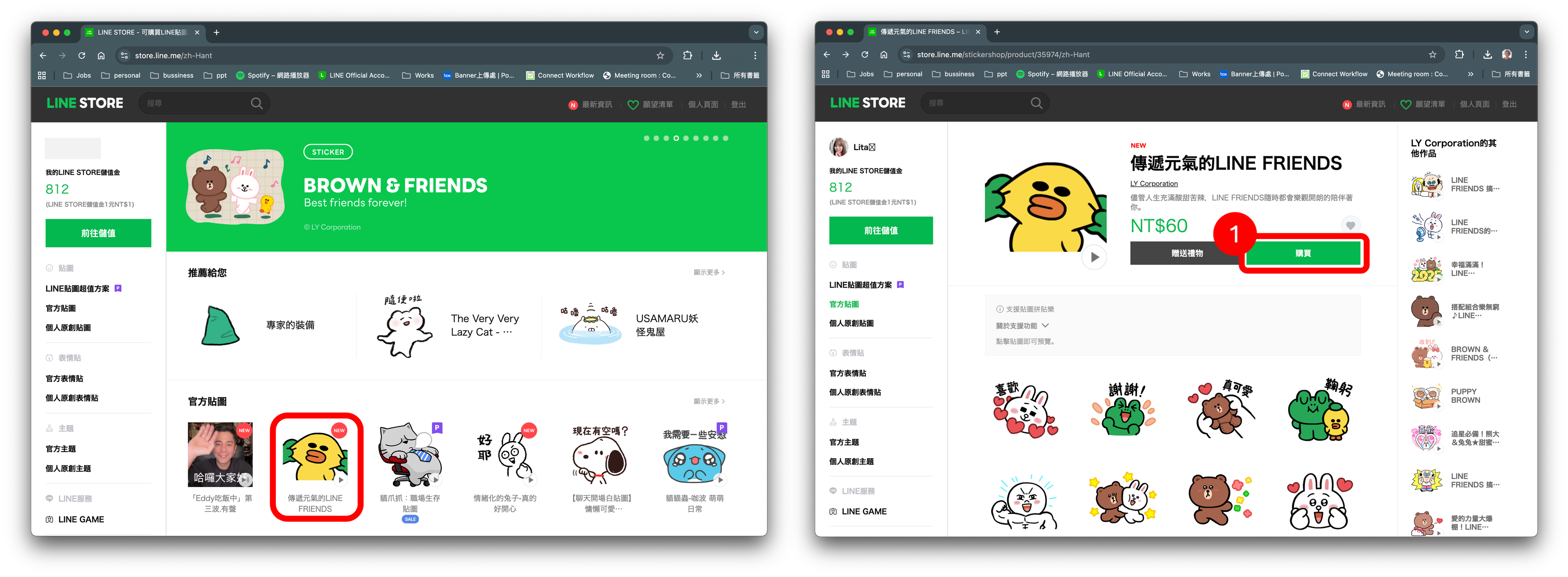 步驟 2:進入貼圖小舖後,點選您喜愛、想購買的貼圖。