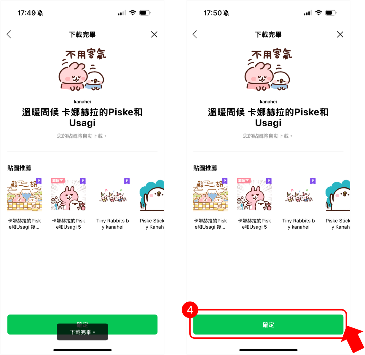 系統將會自動將該組貼圖下載到您的LINE APP中。