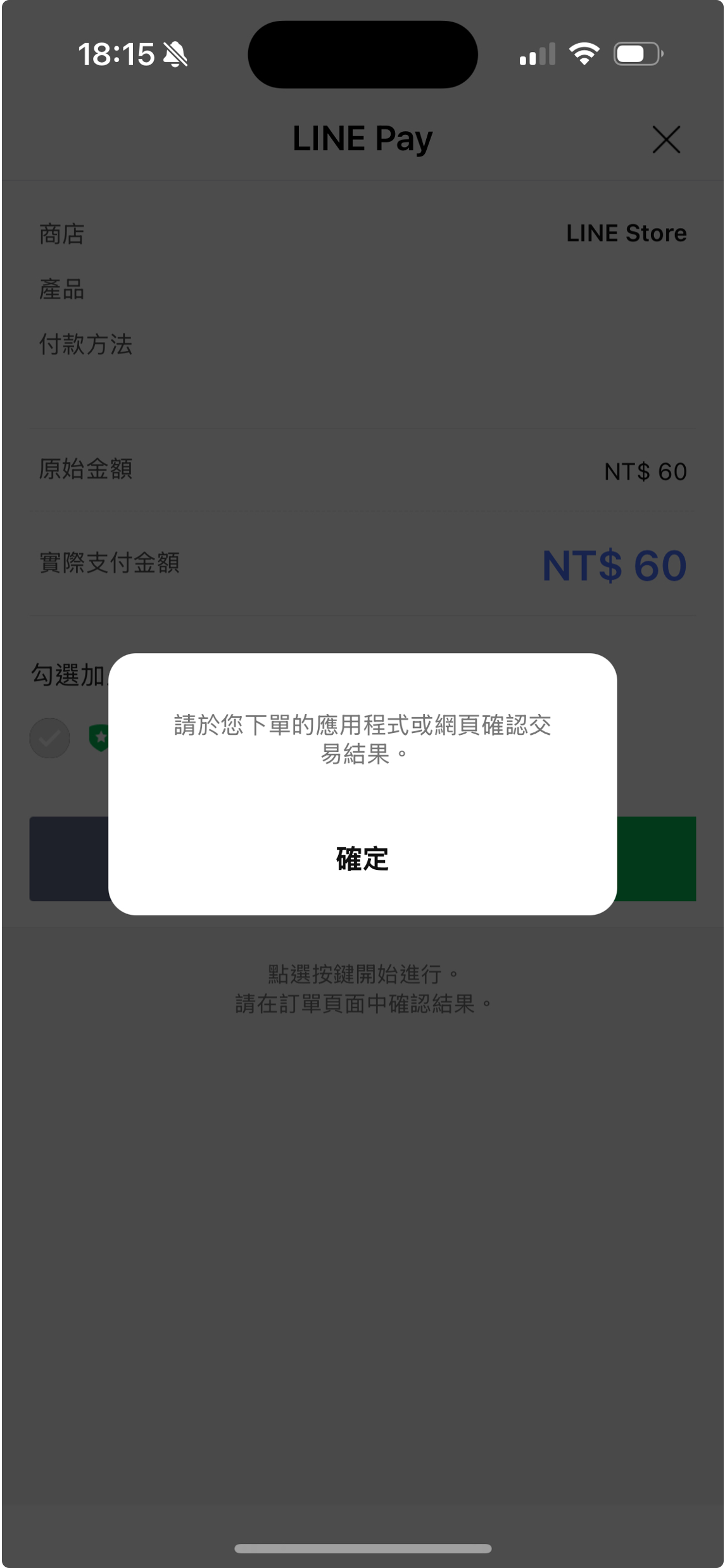 步驟 6:請依網頁指示,至手機點擊LINE APP,確認支付方式後即可付款。