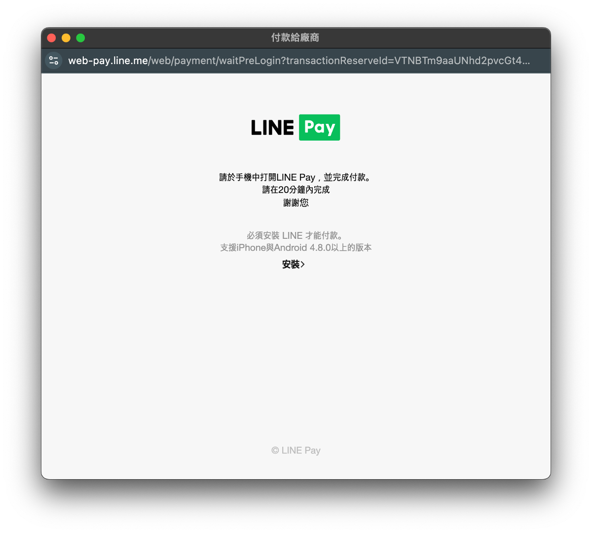 步驟 5:若您使用 LINE Pay 付款的話,接下來會跳出以下畫面。